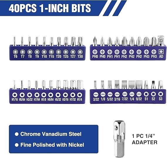 【Well Organization & Easy Pick】The screwdriver bit and nut drivers set comes with a reinforced 1680D Bag. Distinctive model mark on the product. Save your time to make your project more efficient.
